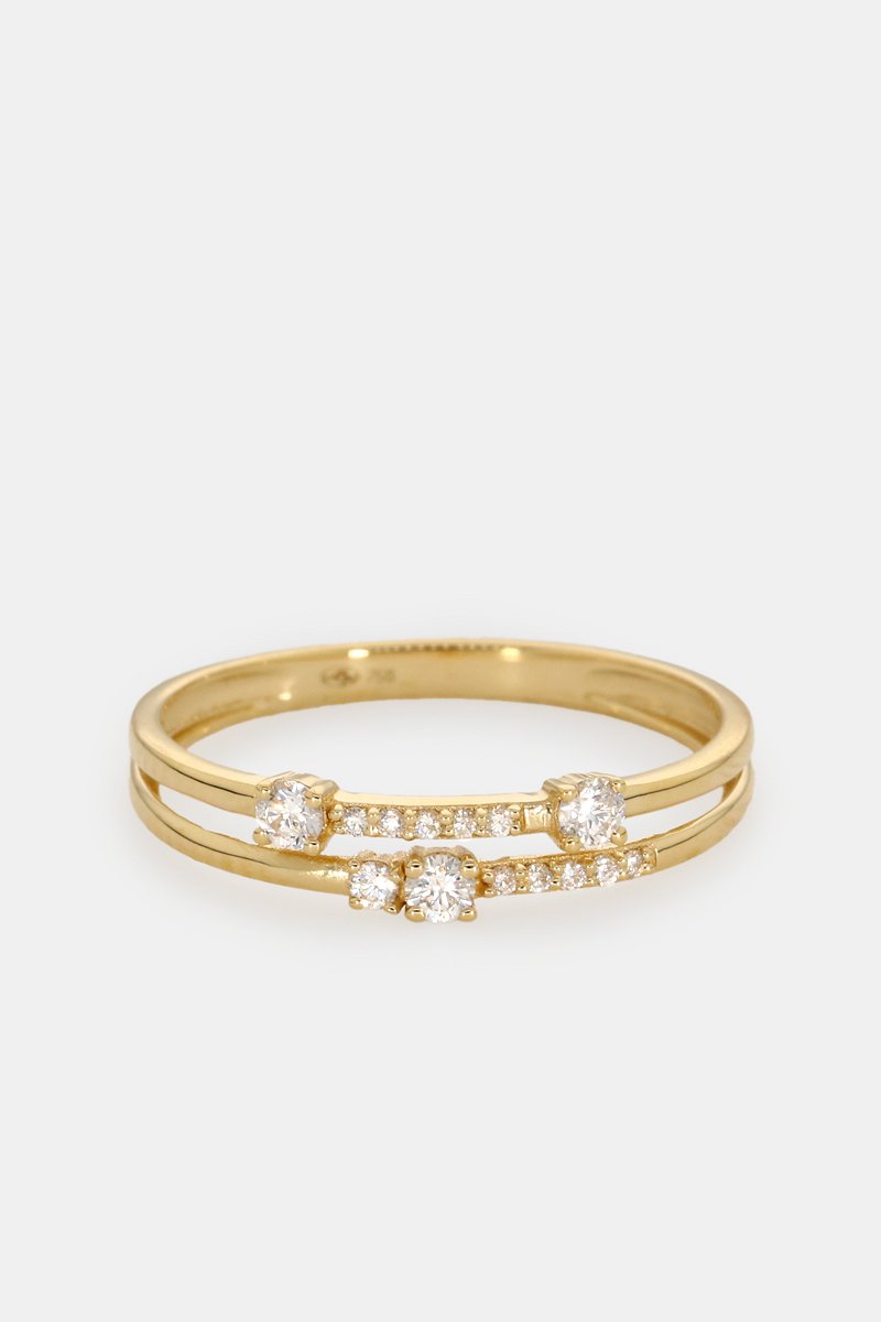 Matière : or jaune 750/1000, diamant 0,015 carat/1, diamants 0,0413 carat/3 et diamants 0,004 carat/10