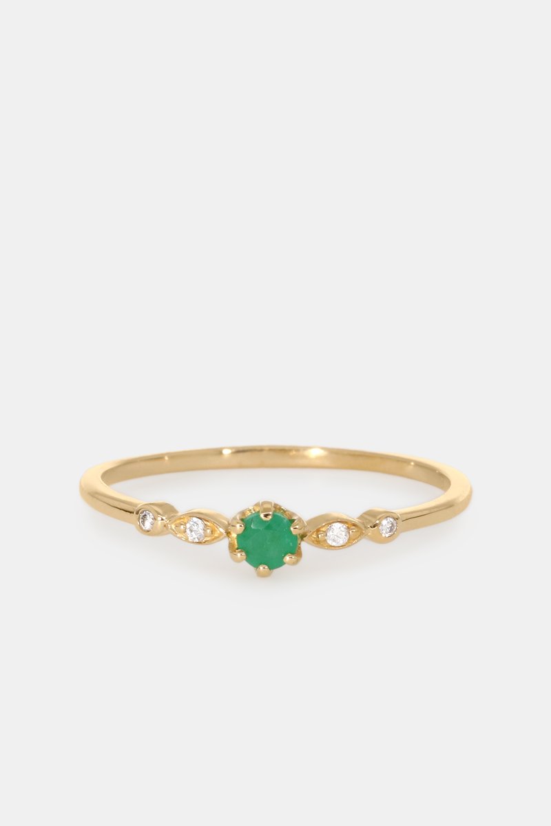 Bague en or jaune sertie d'une émeraude et de 4 diamants.