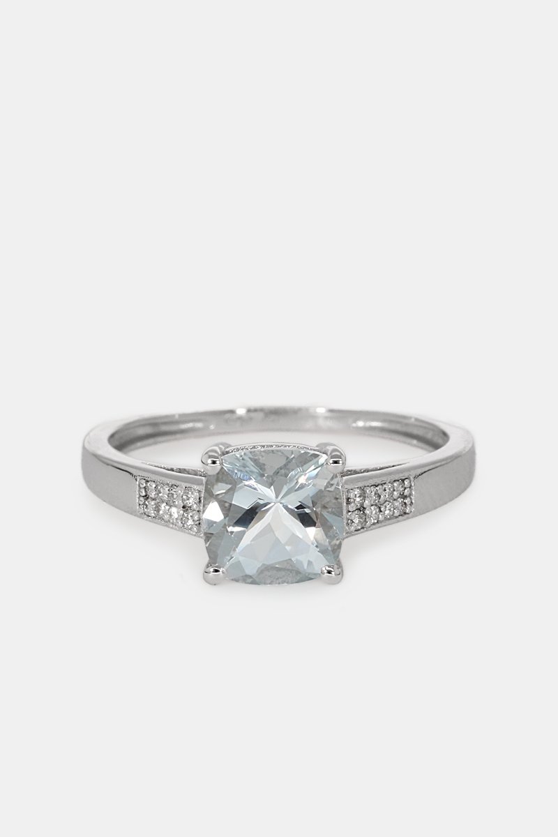 Bague en or blanc sertie d'une topaze et de 16 diamants.
