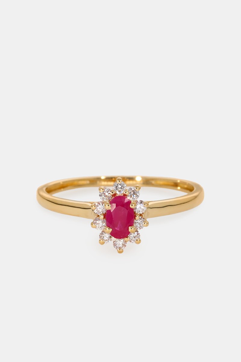 Bague en or jaune sertie d'un rubis et de 10 diamants.