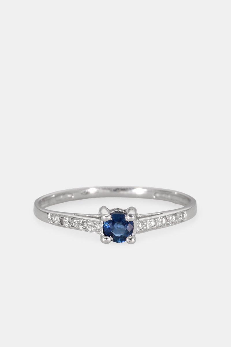 Bague - Or blanc 18 carats, saphir et diamants