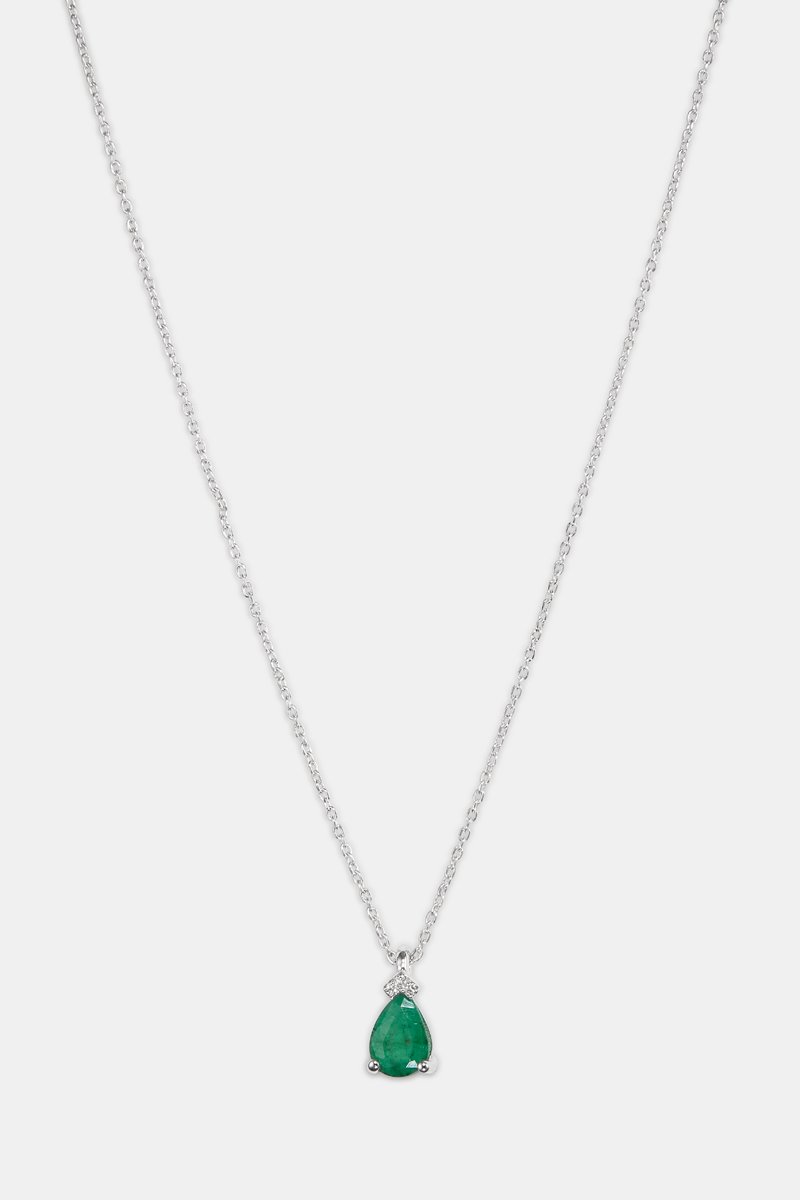 Collier en or blanc serti d'une émeraude et de 3 diamants.