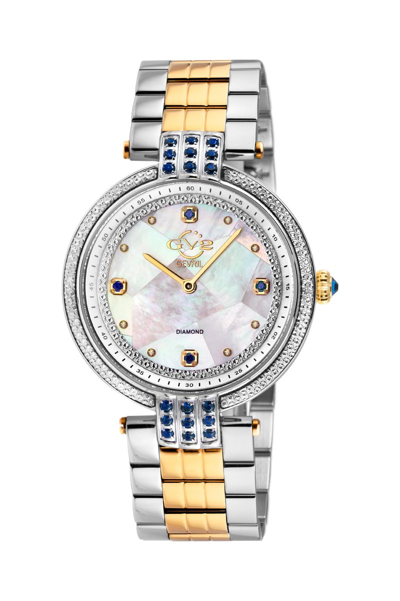 Montre à quartz en acier doré à l'or fin jaune, nacre et diamants Matera