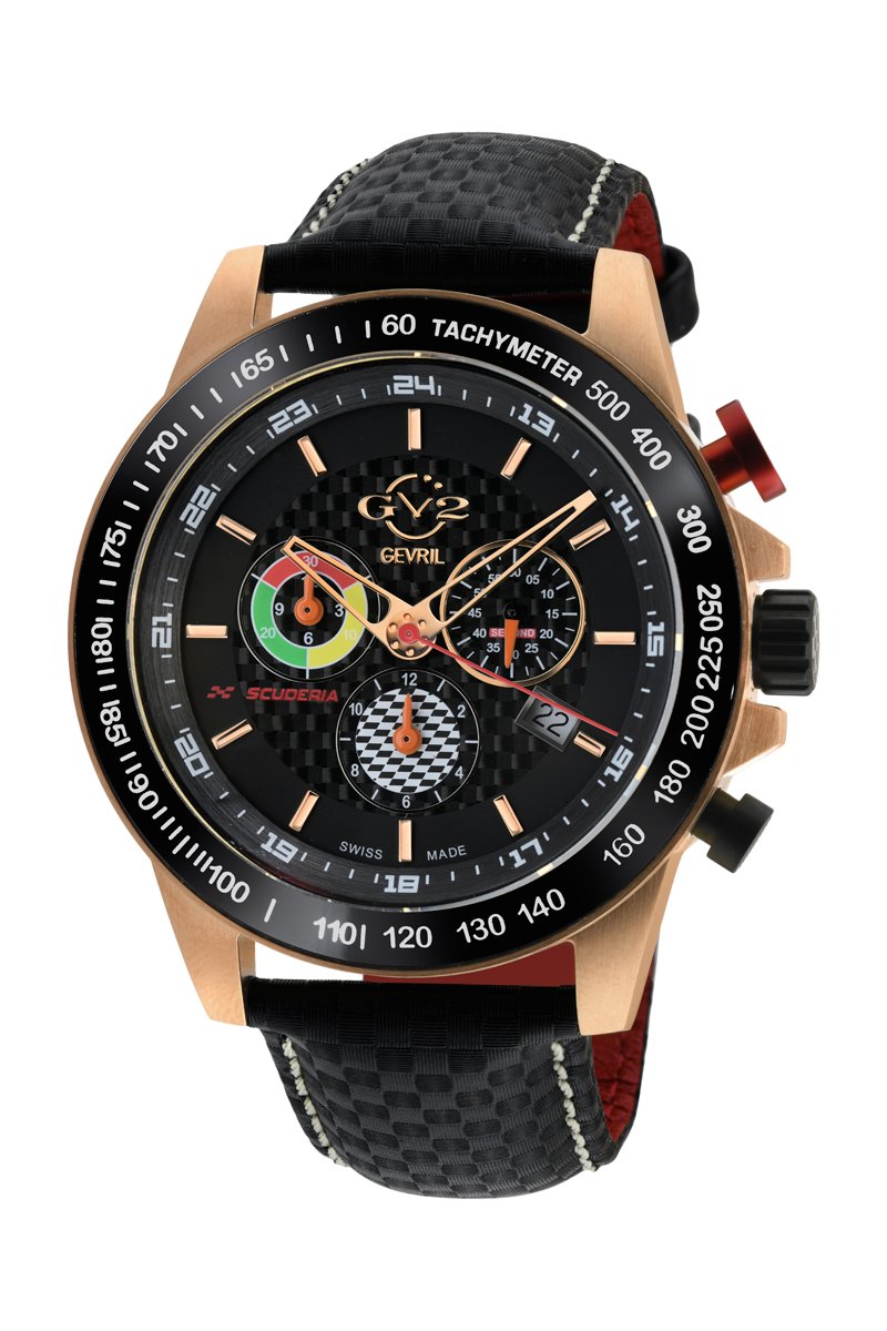Montre à quartz en cuir Scuderia - Chronographe et tachymètre - Noir et doré rose