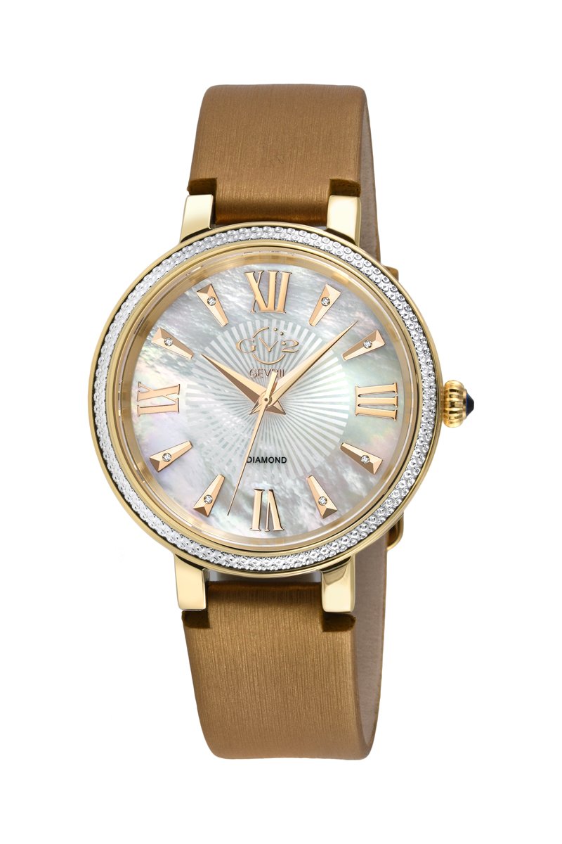 Montre à quartz en cuir, plaqué ion or jaune et diamants Genoa