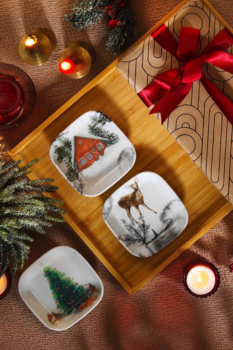 3 plats de service en porcelaine - 10 x 10 x 2 cm