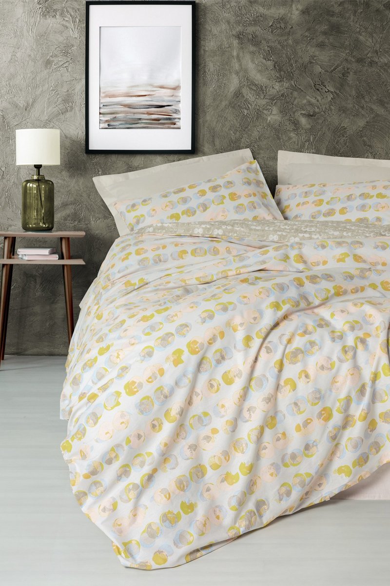 Parure de couette Jocus 57 fils/cm² en coton - Beige et bleu
