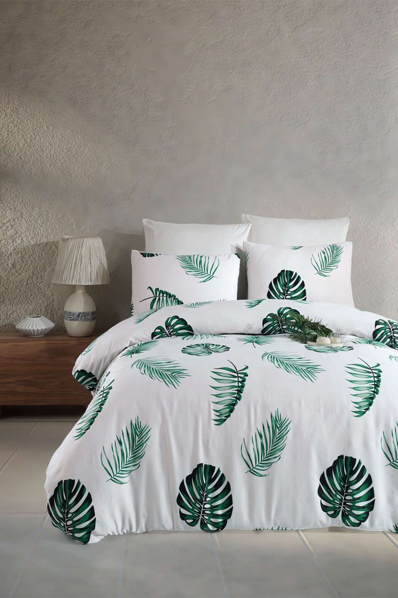 Parure de couette en coton 182 fils/m² Dominik - Blanc et vert