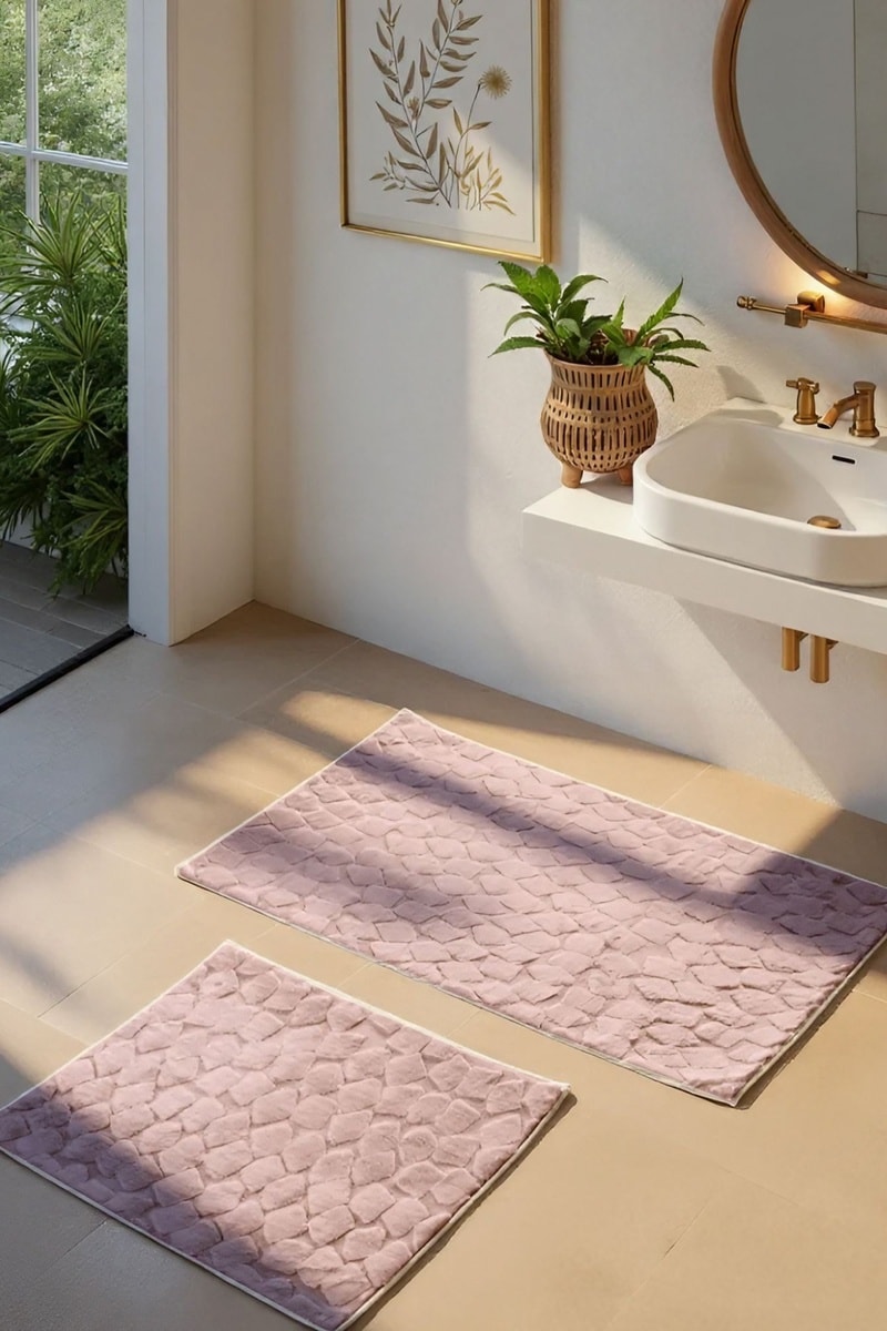 2 tapis de bain Rabbit - Rose - 60 x 100 cm et 50 x 60 cm