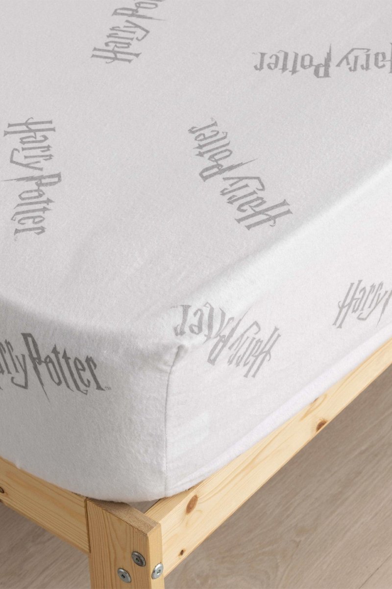 Drap-housse en flanelle de coton 175 fils/cm² Harry Potter - Blanc et gris
