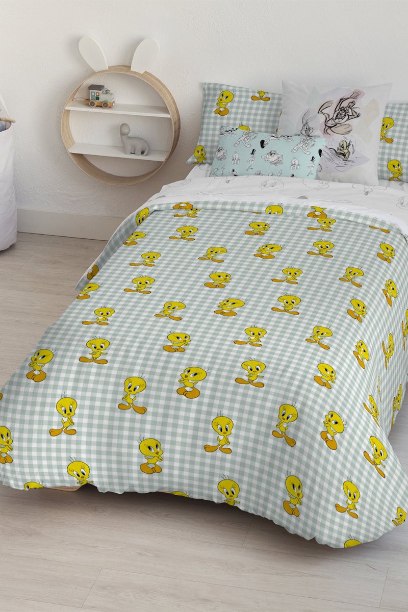 Housse de couette Titi Titi et Grosminet - Bleu ciel et blanc