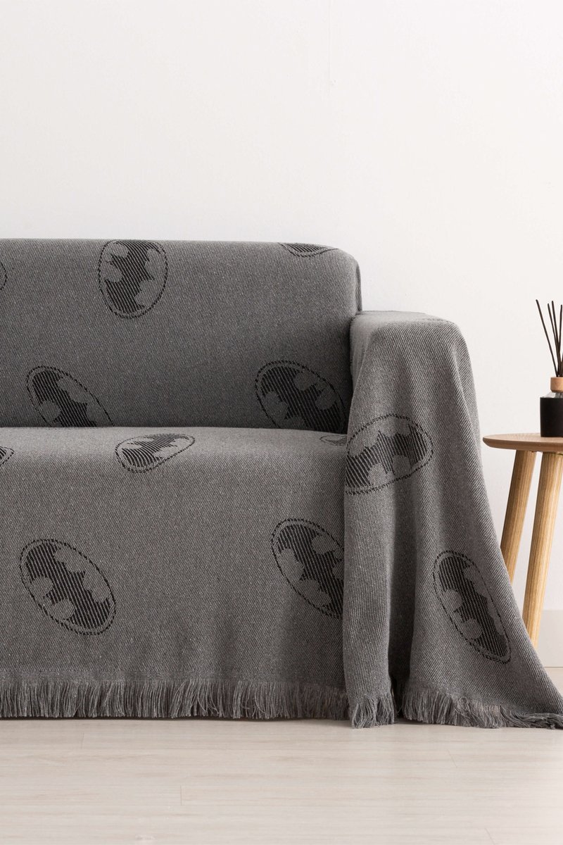 Plaid Batman La Ligue des Justiciers DC Comics - 230 x 270 cm - Gris et noir