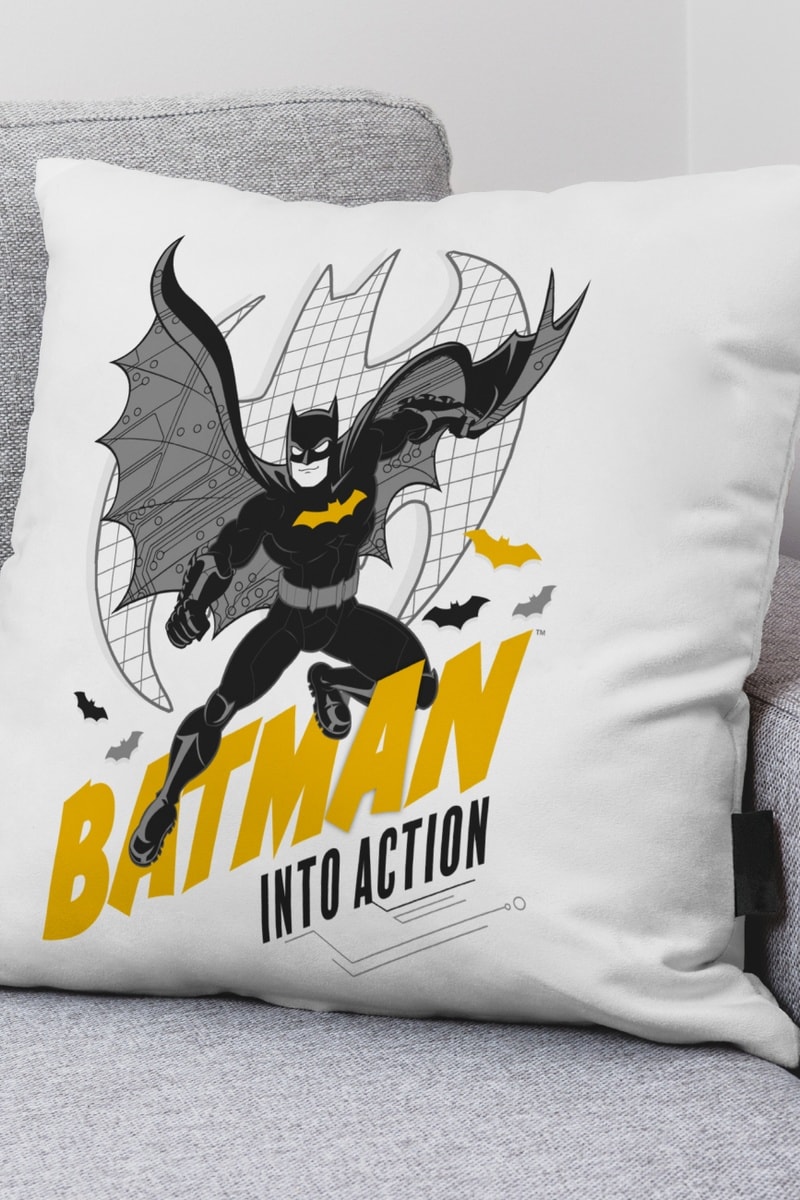 Coussin Batman La Ligue des Justiciers DC Comics - Blanc - 45 x 45 cm