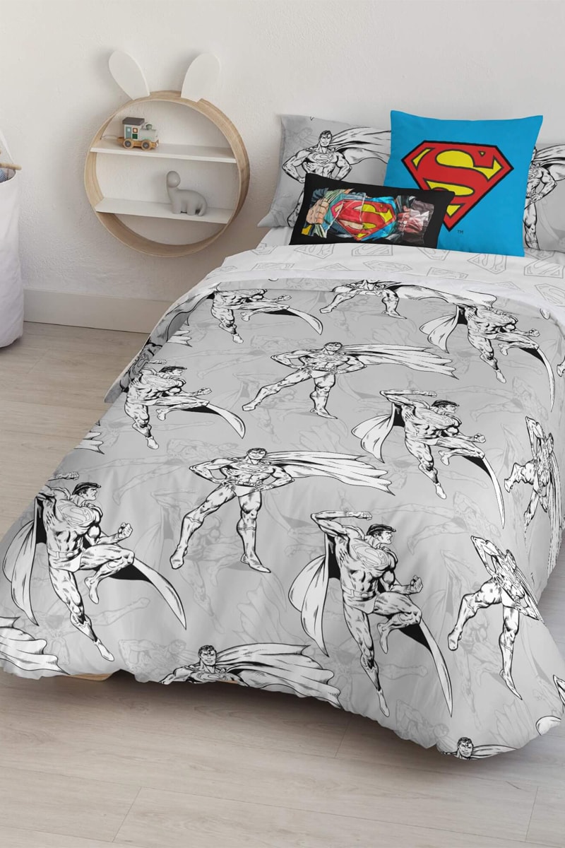 Housse de couette Superman en coton 69 fils/cm² La Ligue des Justiciers DC Comics - Gris