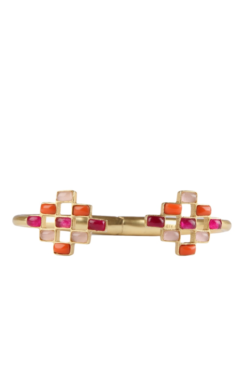Jonc ouvert doré à l'or rose serti de cristaux.