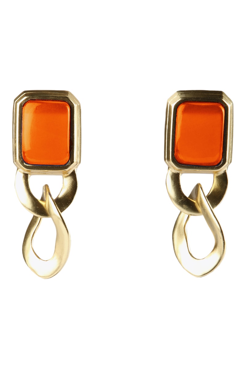 Boucles d'oreilles pendantes dorées à l'or jaune serties de cristaux.