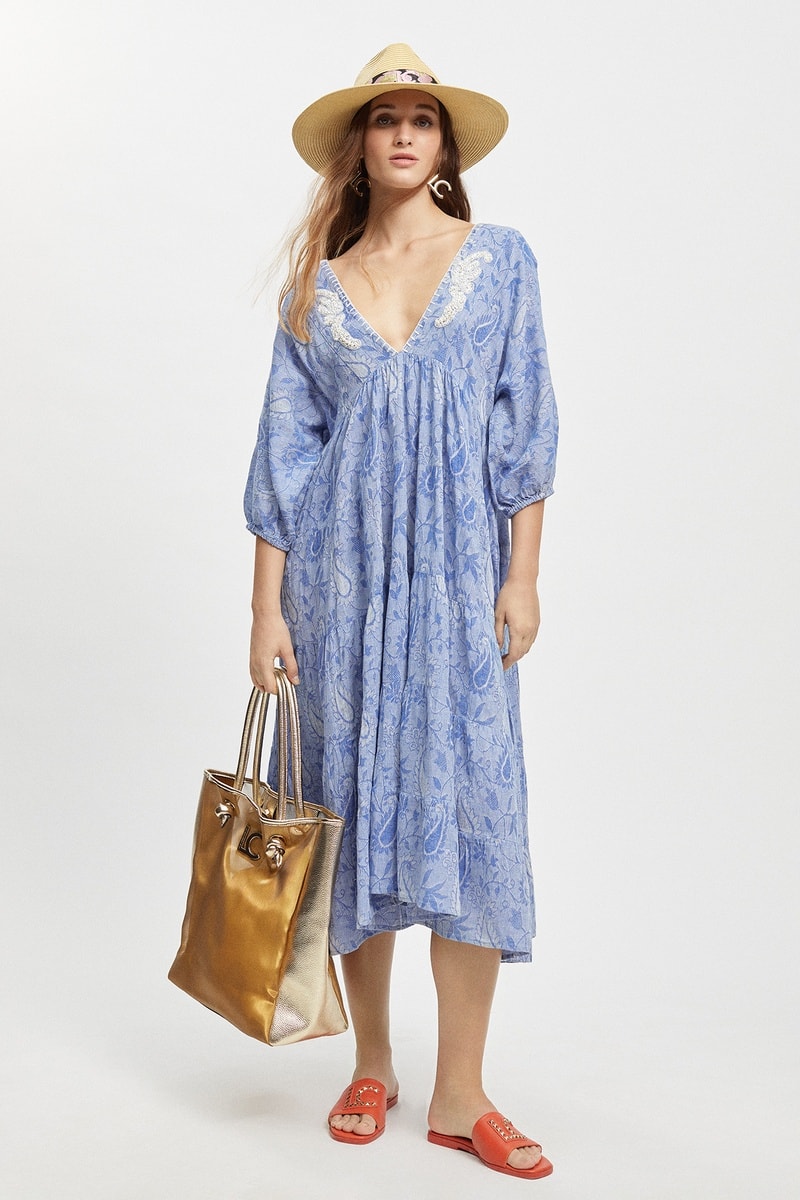 Robe midi - Bleu