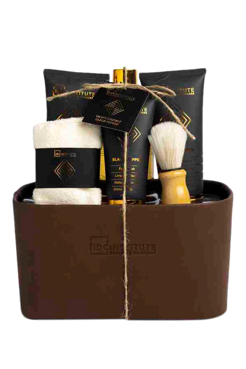 IDC INSTITUTE MEN'S LUXURY SHAVE CARE SET FACE WASH: AQUA (WATER). SODIUM LAURETH SULFATE. SODIUM CHLORIDE. COCAMIDOPROPYL HYDROXYSULTAINE. COCAMIDE MEA. GLYCOL DISTEARATE. PHENOXYETHANOL. BENZOIC ACID. BENZYL ALCOHOL. PARFUM (FRAGRANCE). DISODIUM EDTA. MENTHA PIPERITA OIL. CINNAMAL.