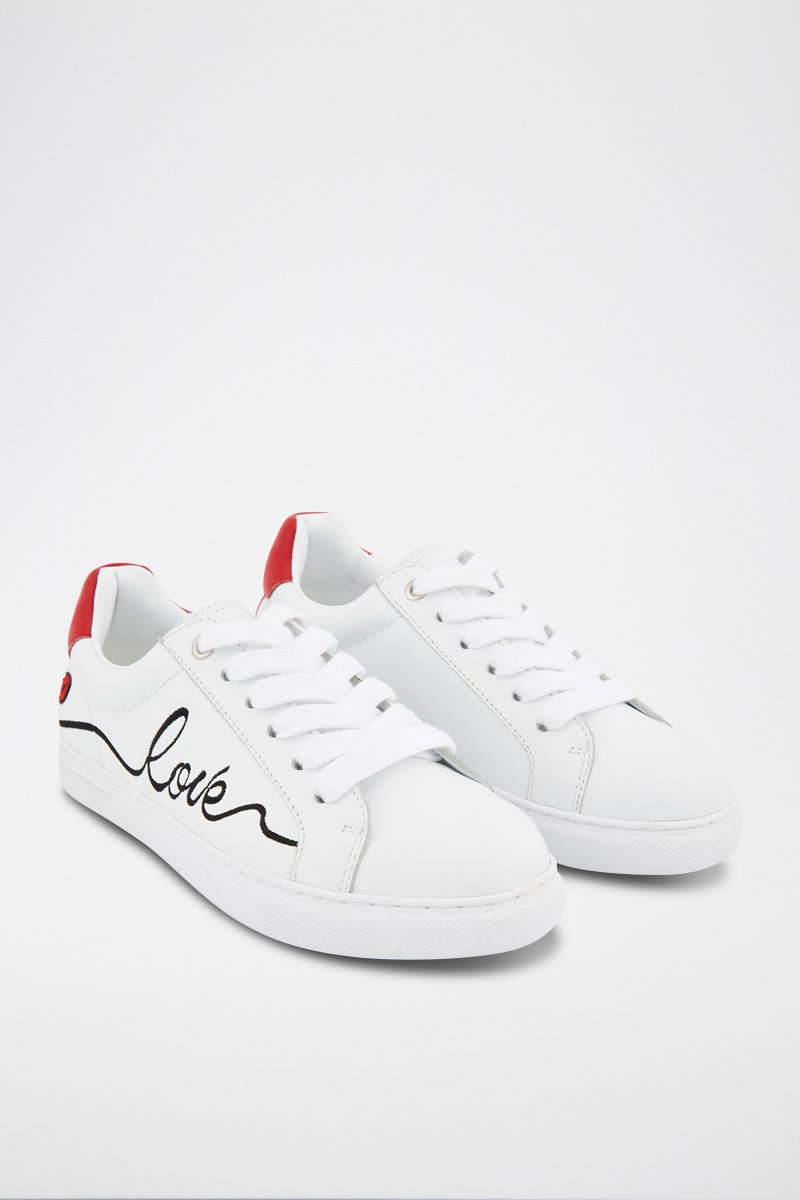 Sneakers en cuir de veau Simone - Blanc et rouge