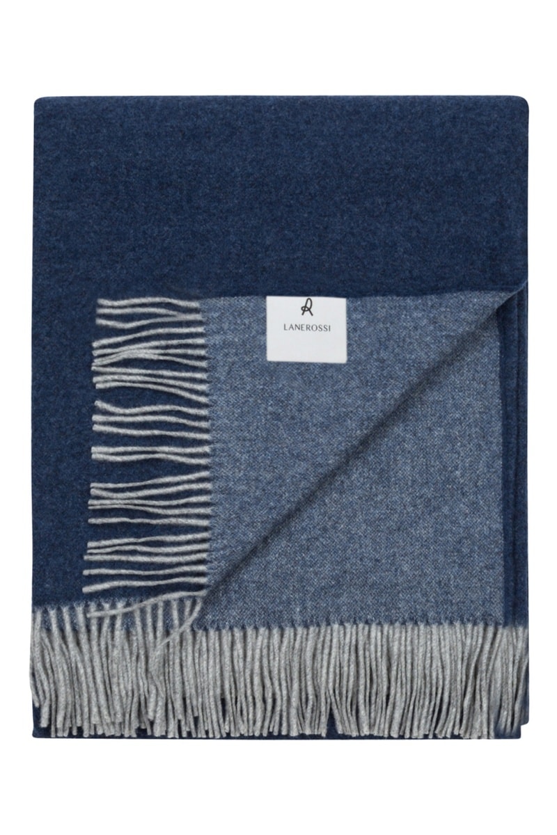 Plaid réversible en mérinos Ulisse - Bleu nuit - 130 x 180 cm