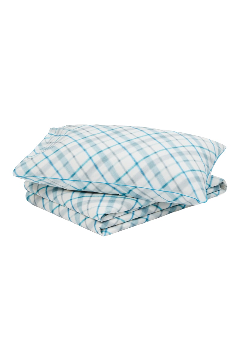 Parure de draps en percale de coton 45 fils/cm² Tartan - Ciel et blanc