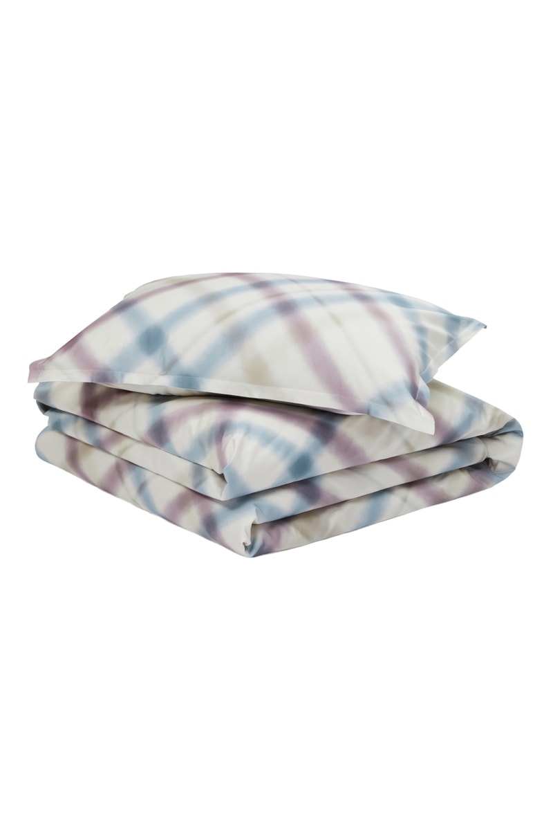 Parure de draps en percale de coton 45 fils/cm² Tartan - Mauve et blanc
