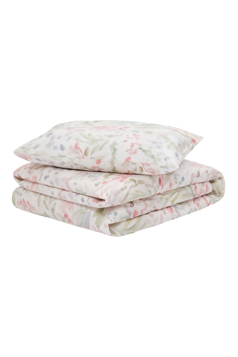 Parure de couette en coton 45 fils/cm² Flora - Rose et blanc - 260 x 240 cm