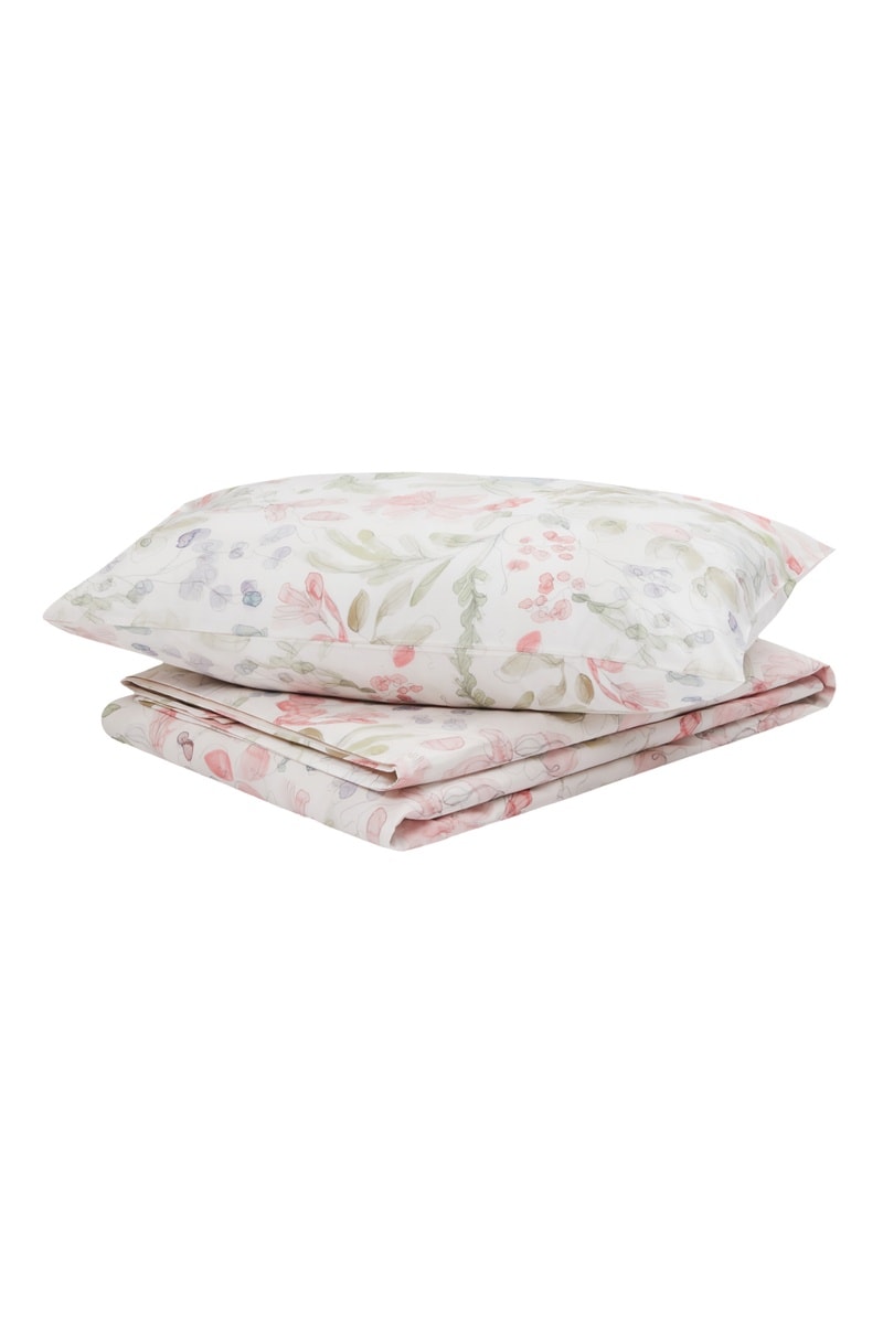Parure de draps en coton 45 fils/cm² Flora - Rose et blanc - 260 x 240 cm