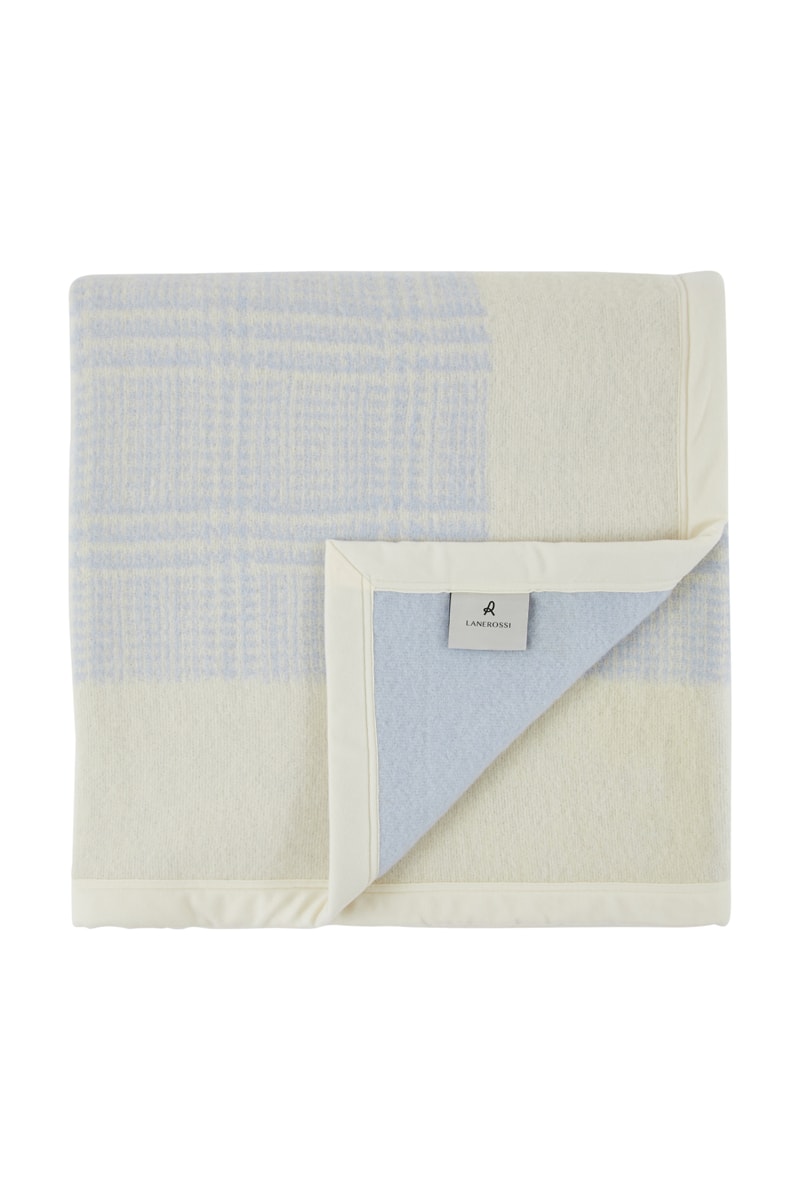 Couverture en laine Galles - Blanc et bleu cobalt - 210 x 250 cm