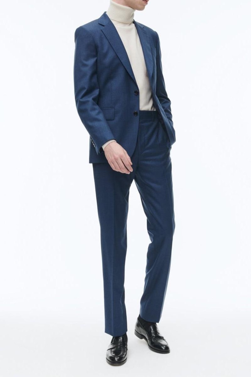Découvrez l'élégance raffinée avec ce costume ajusté en laine à micro dessin.