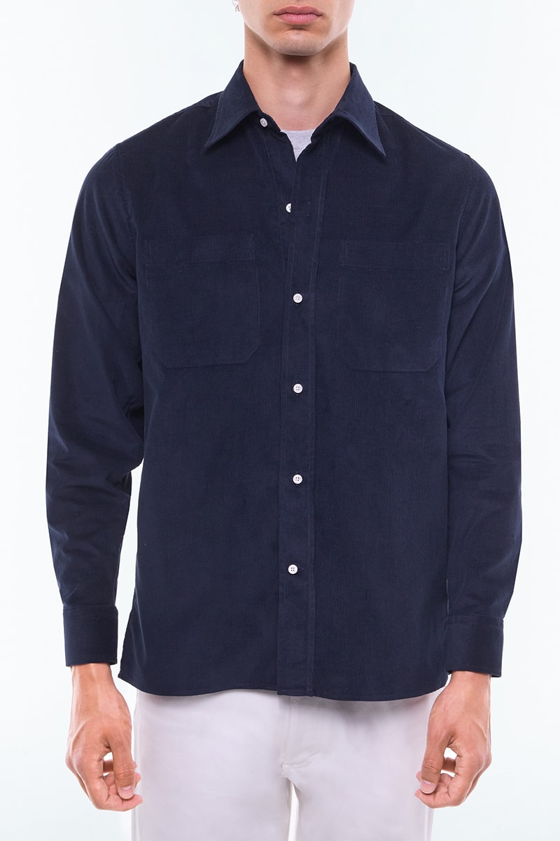 Chemise à col hirondelle en velours côtelé certifié.