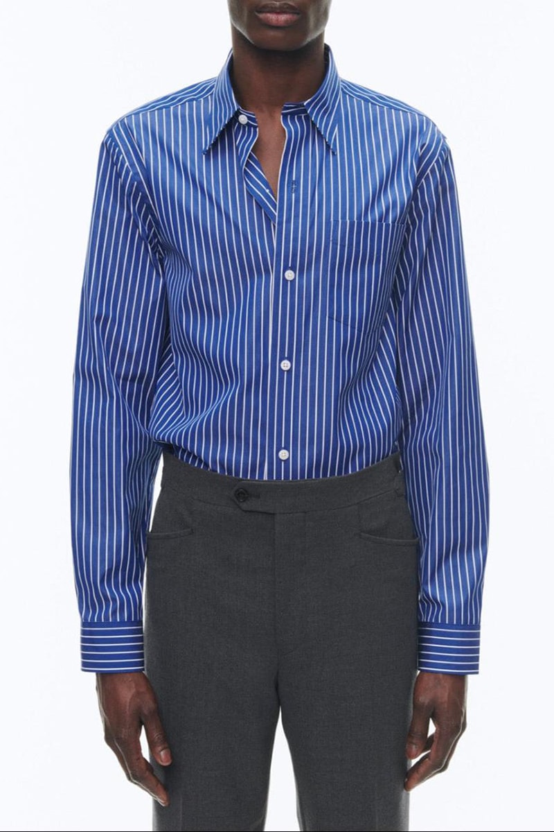 Chemise à col hirondelle en coton bleu cobalt, dotée d'un col hirondelle et d'une coupe droite avec un bas liquette.