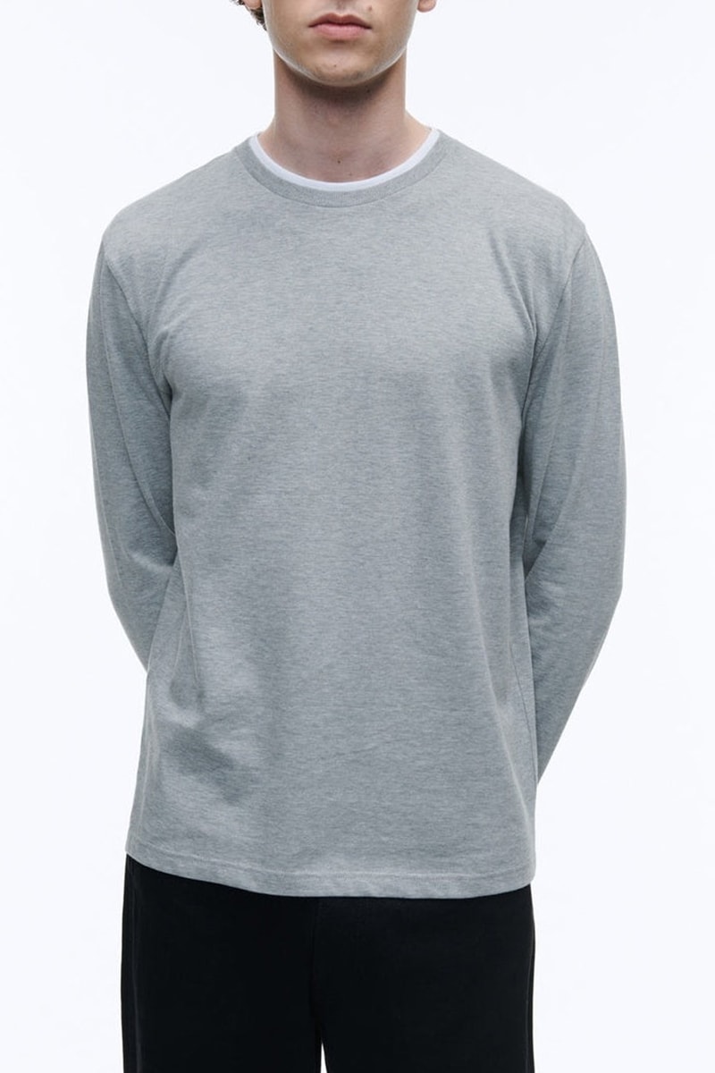 Coupe classique et manches longues pour un confort optimal, ce T-shirt en jersey de coton biologique se distingue par son double col et sa teinte gris.