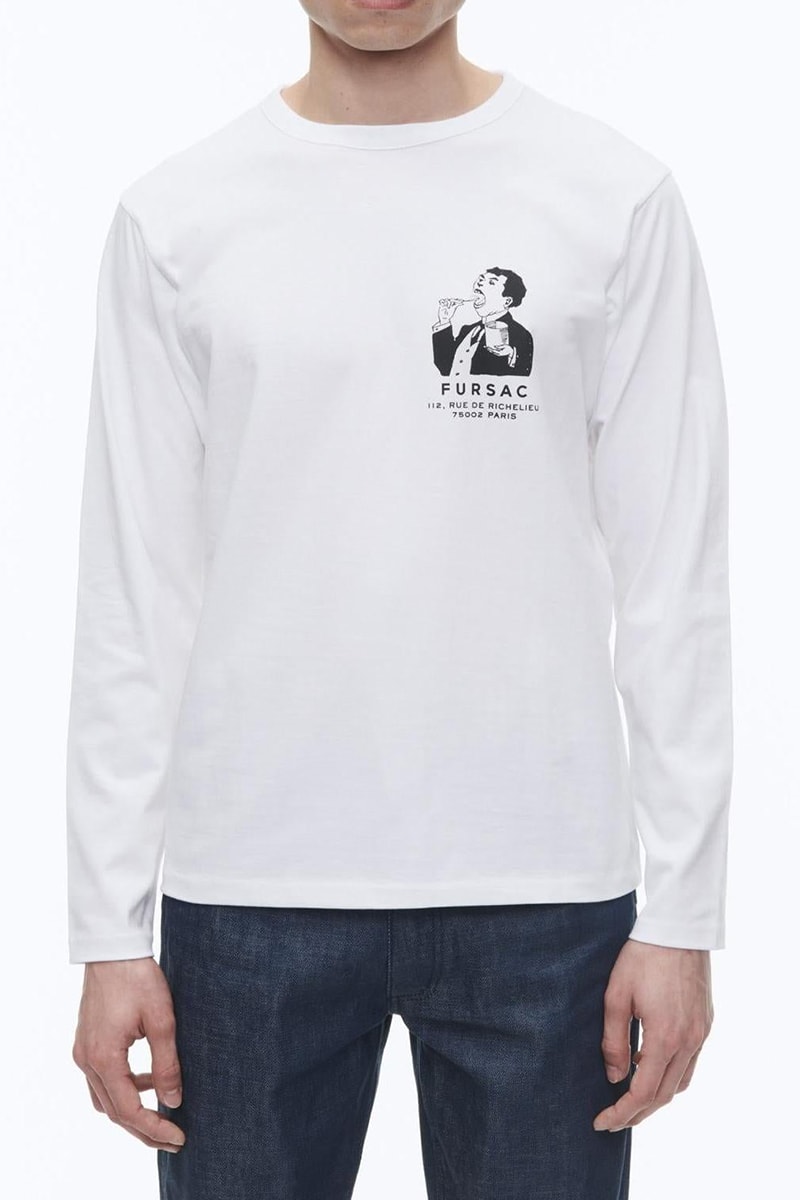 T-shirt en jersey de coton biologique de couleur blanche, doté de manches longues et d'un col rond sans ourlet.