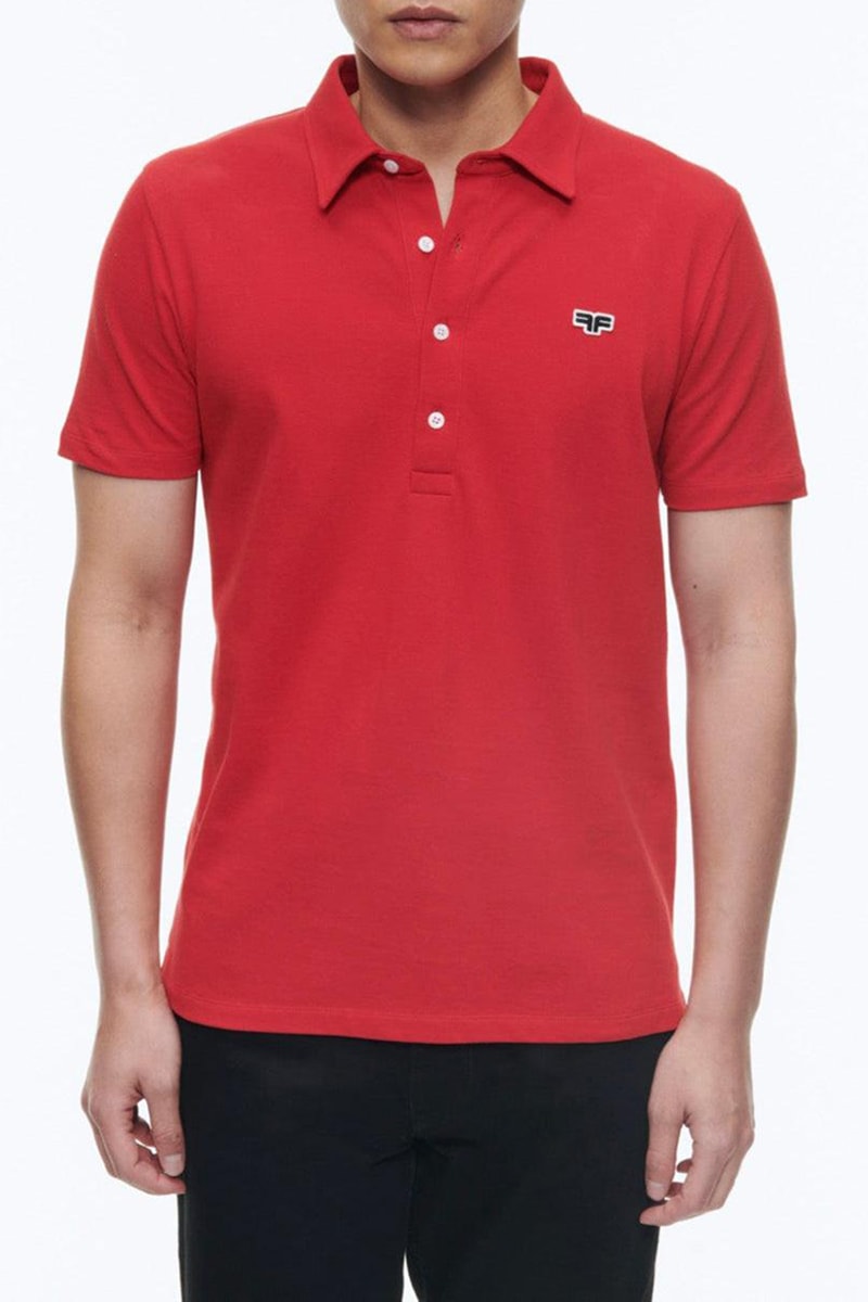 Polo en piqué de coton biologique aux manches courtes et à la couleur rouge vibrante.