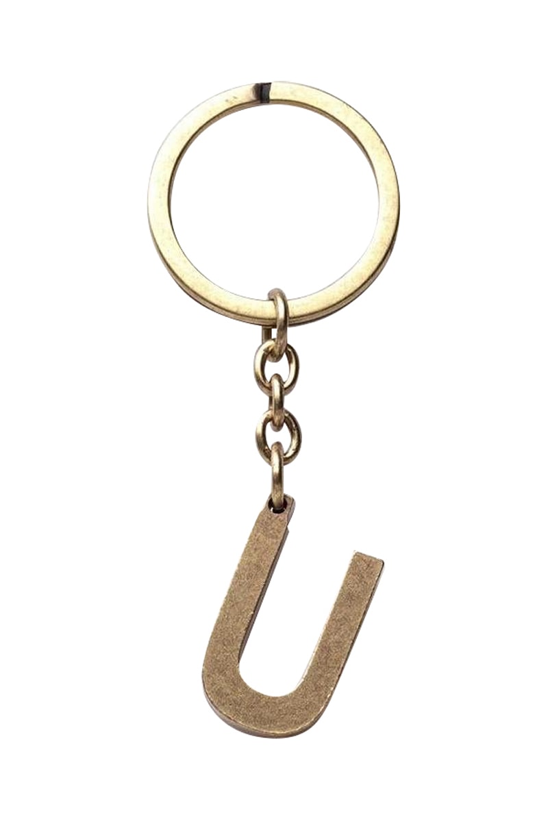 Porte-clés en laiton doré représentant la lettre U, mesurant 2,5 cm de hauteur.