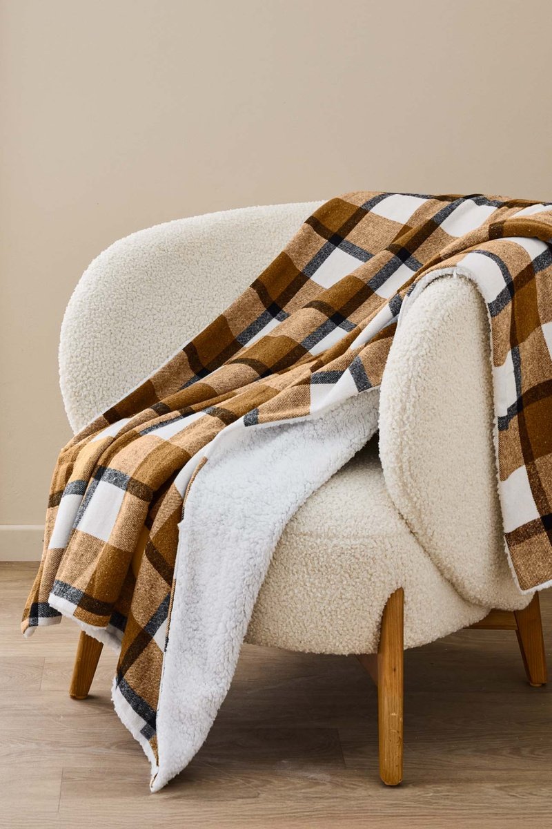 Plaid Ecossais - Camel et blanc - 125 x 150 cm