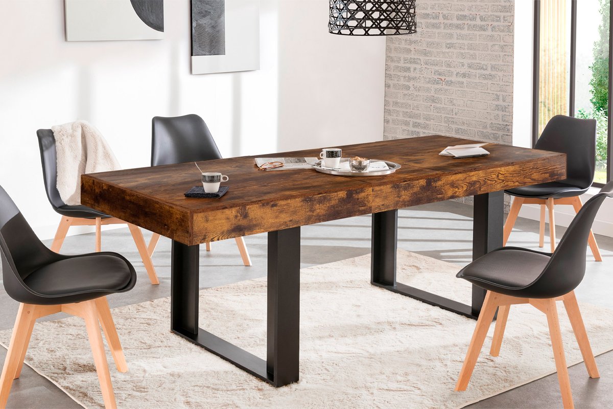 Table extensible Brixton - Imitation bois vieilli et noir