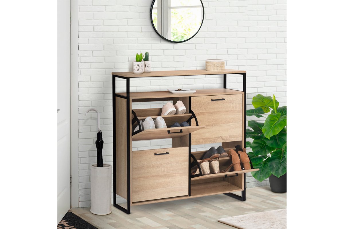 Meuble à chaussures 4 abattants Alan - 100 x 97 x 23 cm