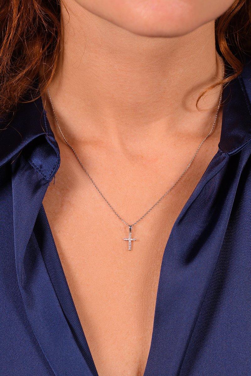 Pendentif Croix du Bonheur - Or blanc et diamants