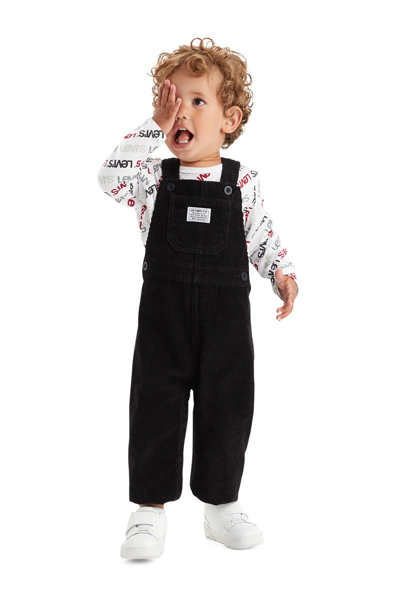 T-shirt et salopette en velours - Blanc, gris, noir et rouge