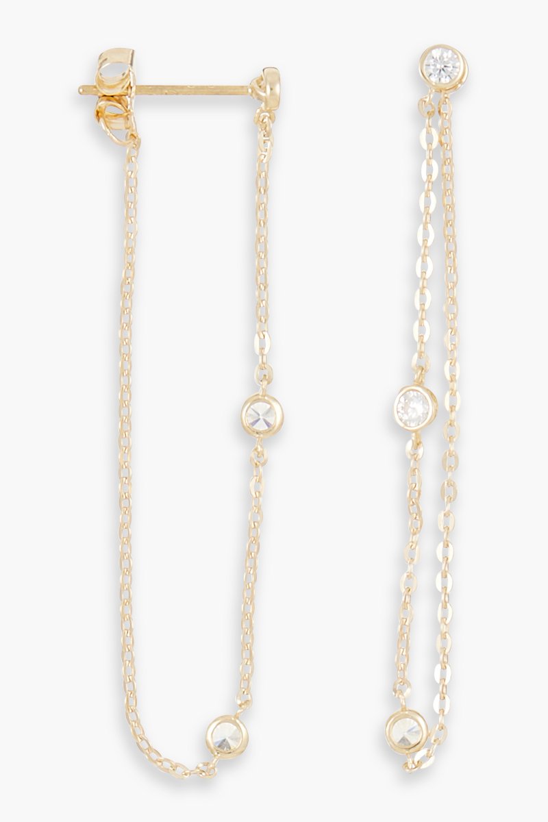 Boucles d'oreilles pendantes en or jaune serties de zirconiums.