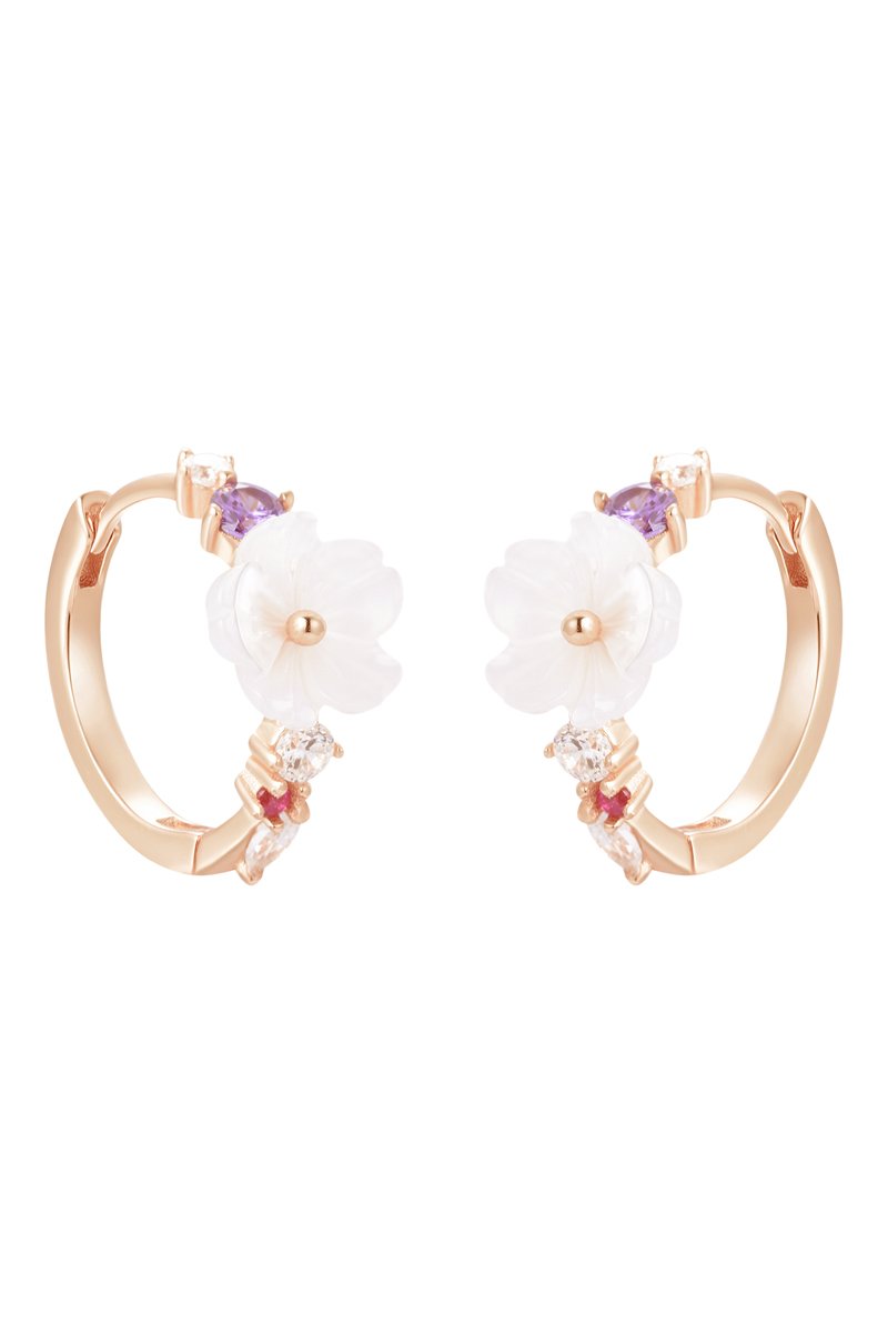 Créoles en argent plaqué or rose serties de nacre et de zirconiums.