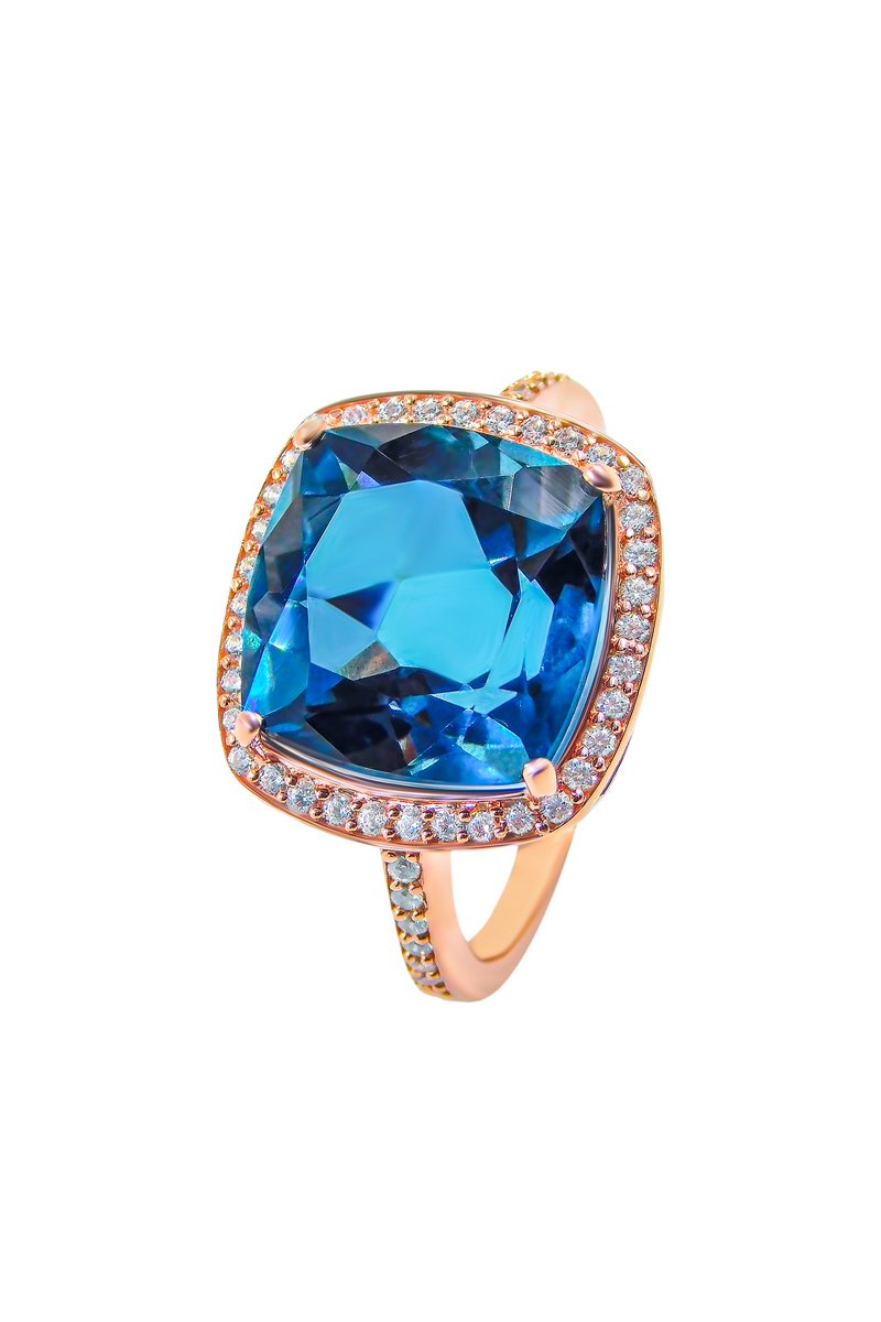 Bague en argent plaqué or rose sertie d'une topaze et de zirconiums.