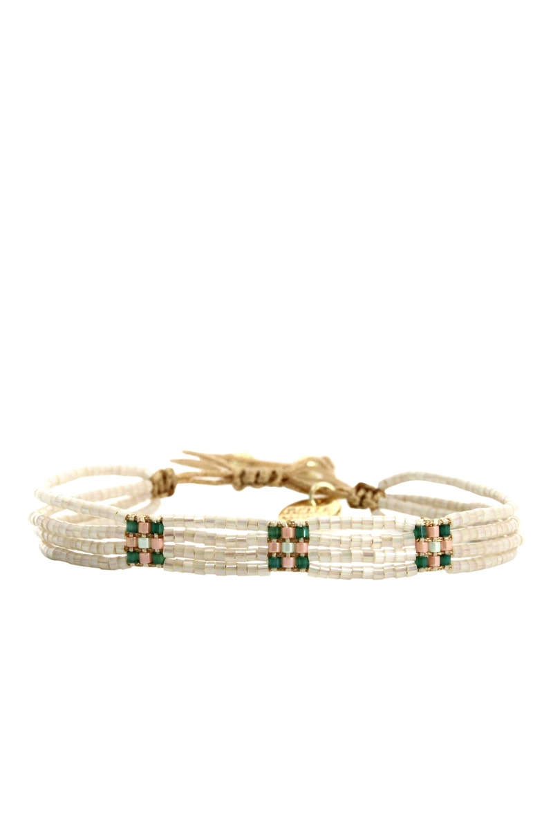 Bracelet multi-rangs Rose - Blanc et vert émeraude