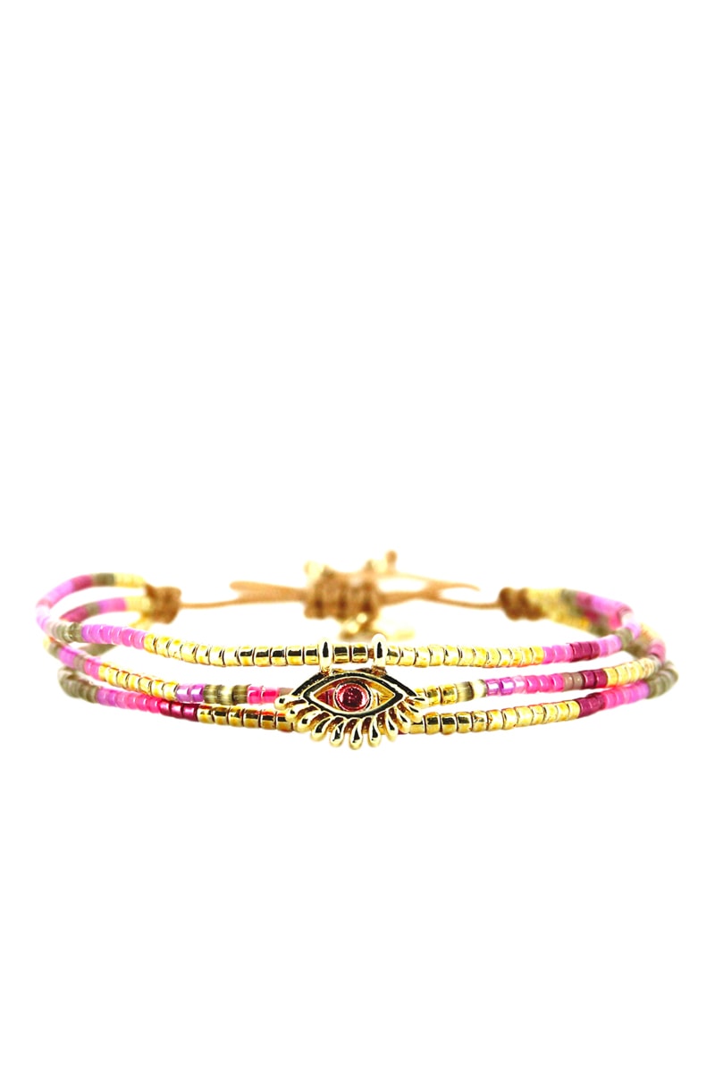 Bracelet Capucine - Doré et fuchsia