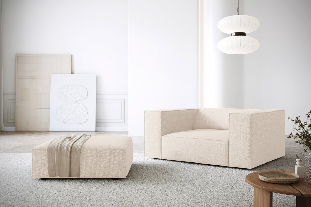 Pouf Arendal - Beige clair - En tissu chenille