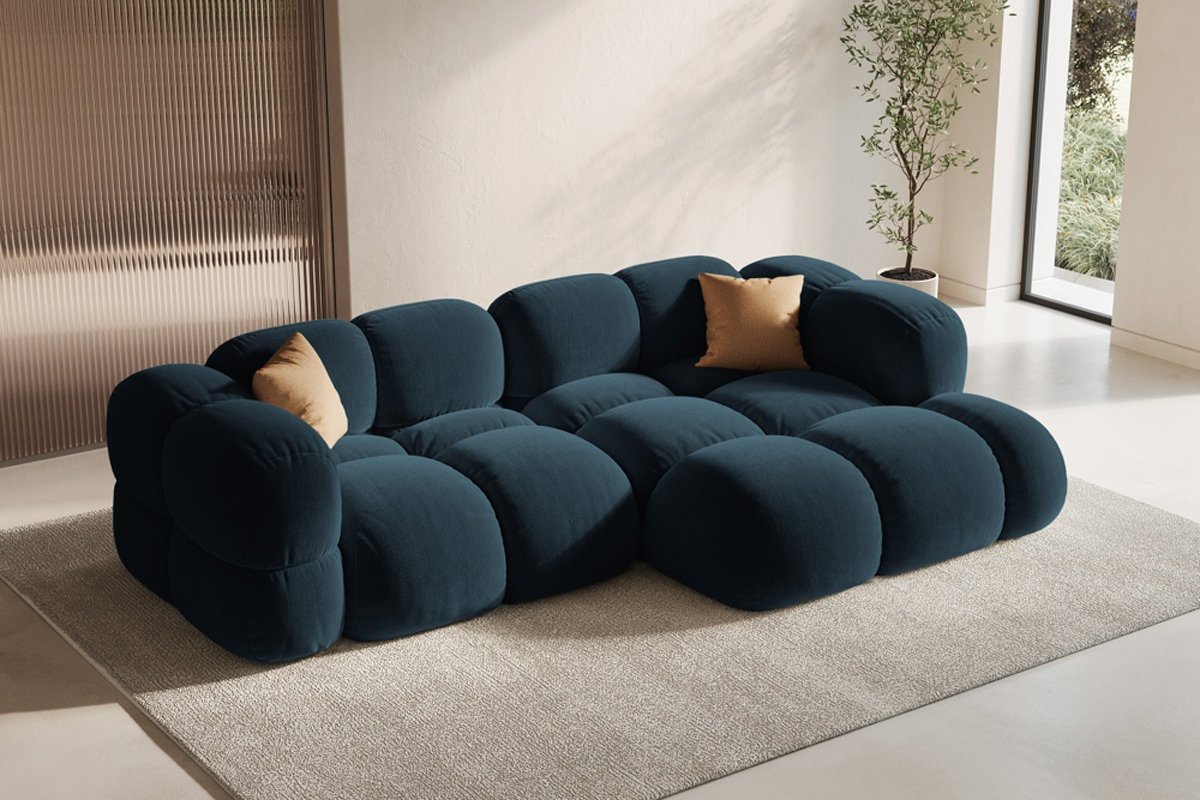 Canapé d’angle droit Loretto - Bleu pétrole - 3 places - Toucher velours