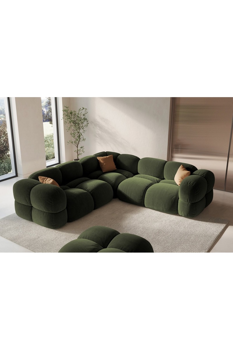 Canapé d’angle symétrique Loretto - Vert - 4 places - Toucher velours