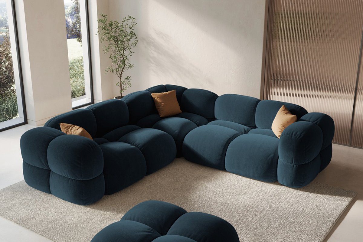 Canapé d’angle symétrique Loretto - Bleu pétrole - 4 places - Toucher velours